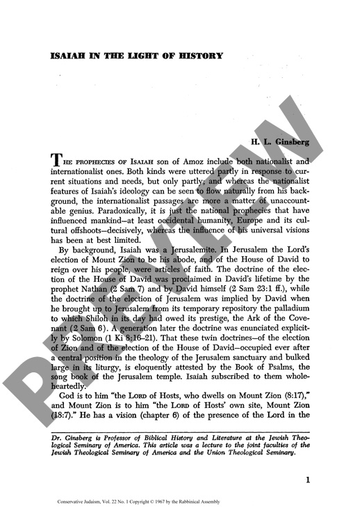 By H. L. Ginsberg for CJ vol. 22 no. 1, Fall 1967