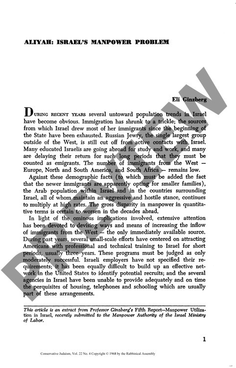 Aliyah: Israel's Manpower Problem
