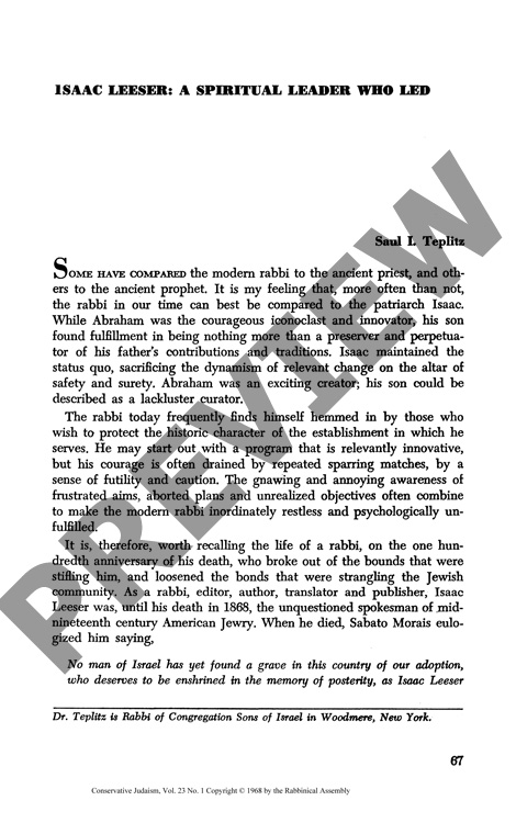 Isaac Leeser: A Spiritual Leader Who Led