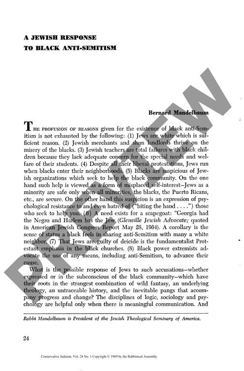 By Bernard Mandelbaum for CJ vol. 24 no. 1, Fall 1969