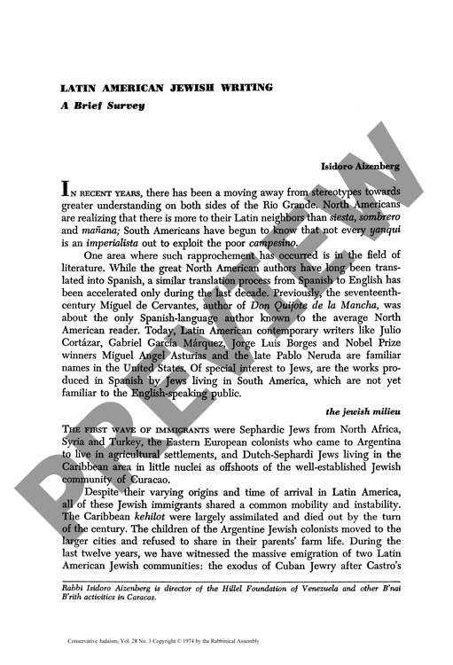 By Isidoro Aizenberg for CJ vol. 28 no. 3, Spring 1974