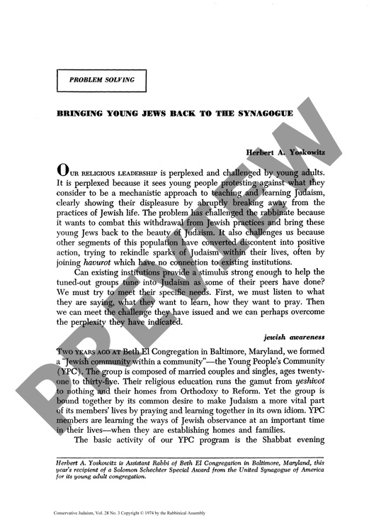 Bringing Young Jews Back to the Synagogue: Problem Solving