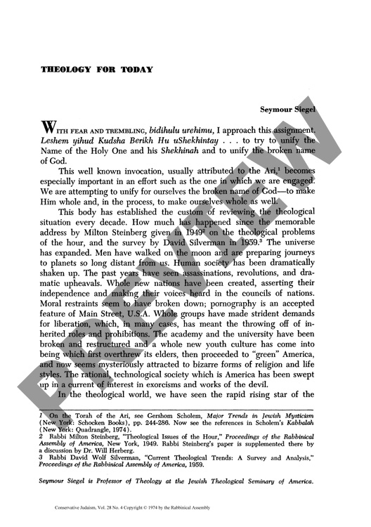 By Seymour Siegel for CJ vol. 28 no. 4, Summer 1974