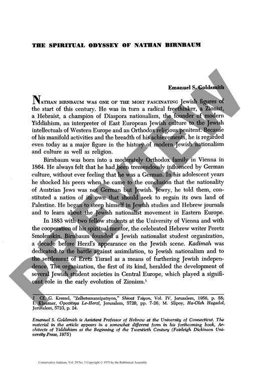 The Spiritual Odyssey of Nathan Birnbaum