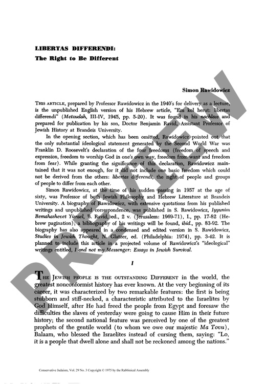 By Simon Rawidowicz for CJ vol. 29 no. 3, Spring 1975