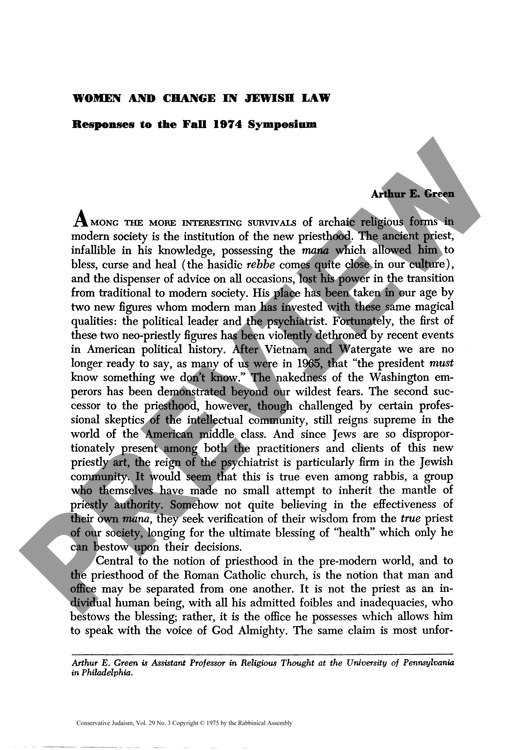 Women and Change in Jewish Law: Responses to the Fall 1974 Symposium