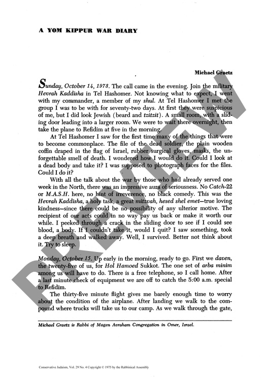 A Yom Kippur War Diary