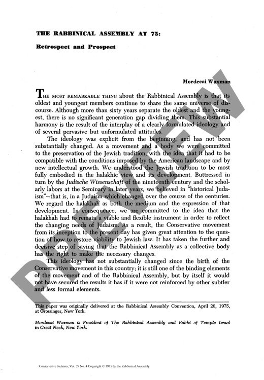 The Rabbinical Assembly at 75: Retrospect and Prospect