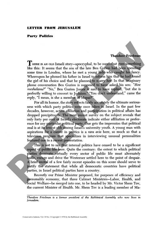 By Theodore Friedman for CJ vol. 30 no. 2, Winter 1976