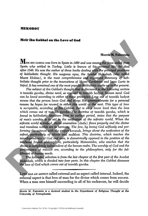 Mekorot: Meir ibn Gabbai on the Love of God