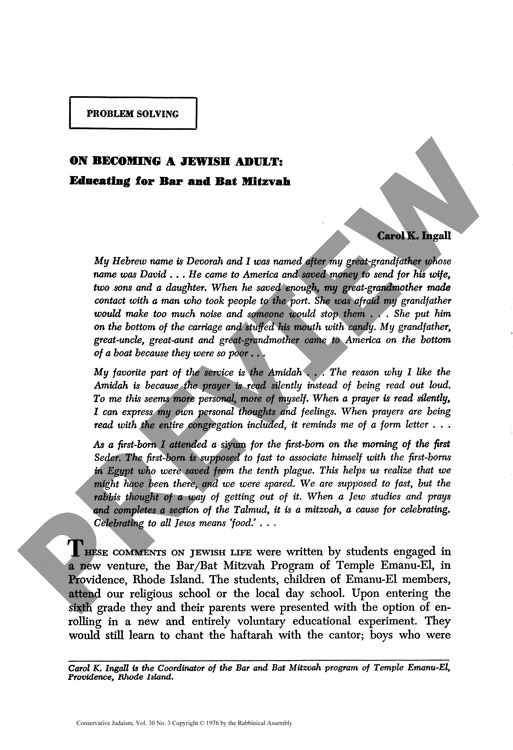 On Becoming a Jewish Adult: Educating for Bar and Bat Mitzvah: Problem Solving