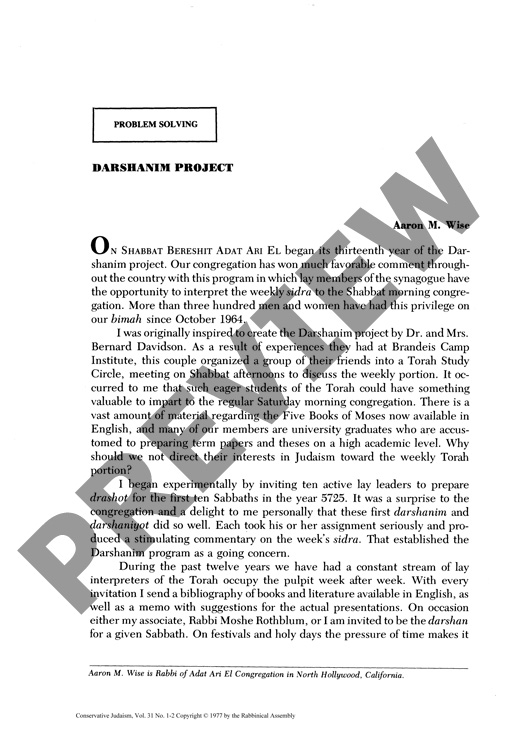 Problem Solving: Darshanim Project