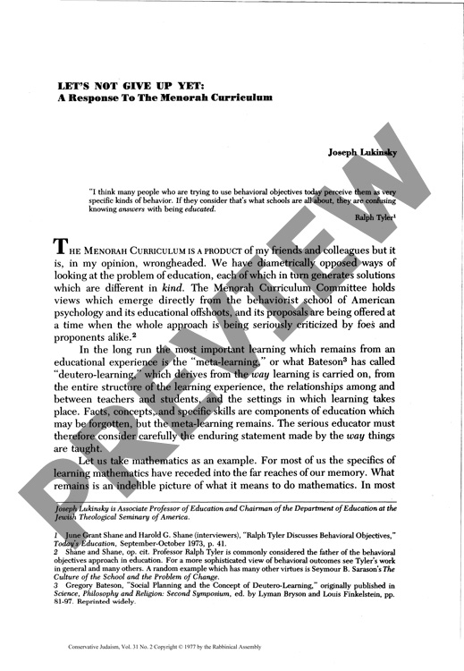 Let's Not Give Up Yet: A Response to the Menorah Curriculum