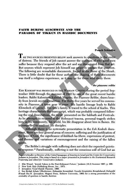 Faith During Auschwitz and the Paradox of Tikkun in Hasidic Documents