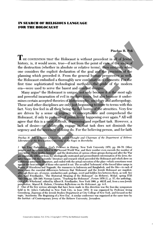 By Pinchas H. Peli for CJ vol. 32 no. 2, Winter 1979