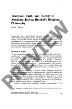 Tradition, Faith, and Identity in Abraham Joshua Heschel's Religious Philosophy