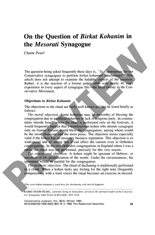 On the Question of Birkat Kohanim in the Mesorati Synagogue