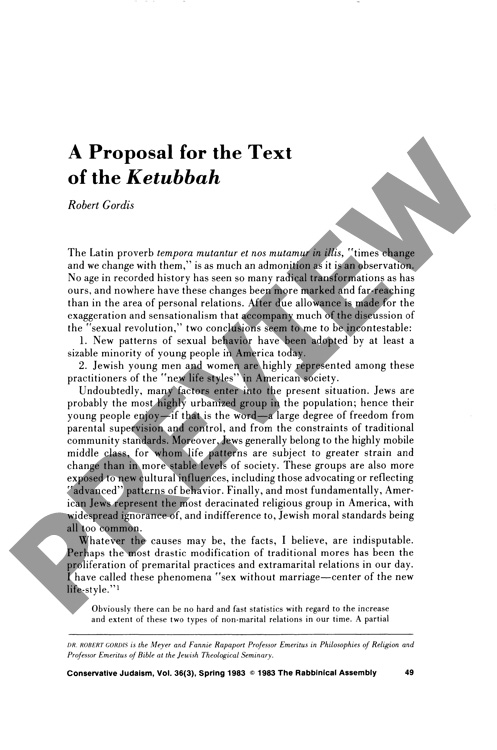 A Proposal for the Text of the Ketubbah