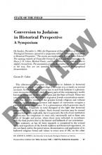 Conversion to Judaism in Historical Perspective: A Symposium: State of the Field