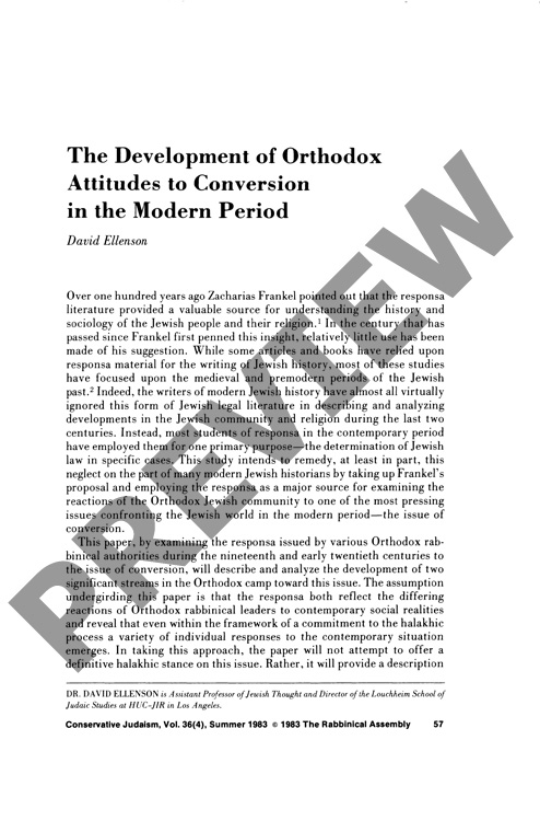 The Development of Orthodox Attitudes to Conversioin in the Modern Period
