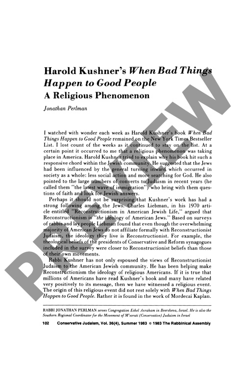 Harold Kushner's When Bad Things Happen to Good People A Religious Phenomenon