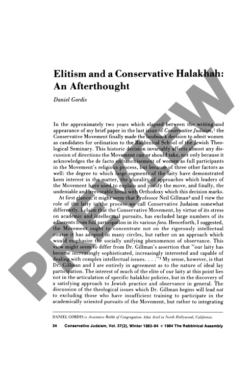 Elitism and a Conservative Halakhah: An Afterthought