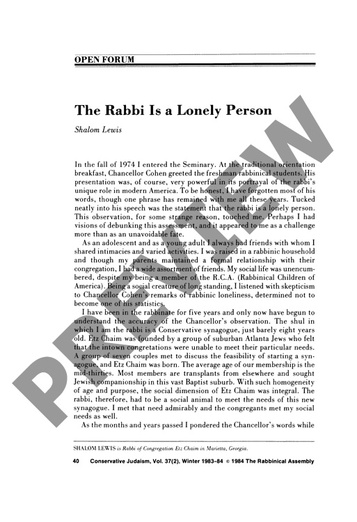 The Rabbi Is a Lonely Person