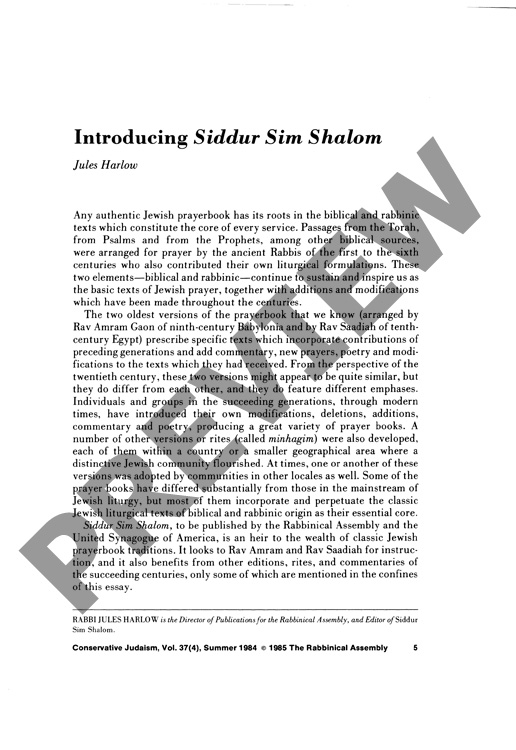 Intoducing Siddur Sim Shalom