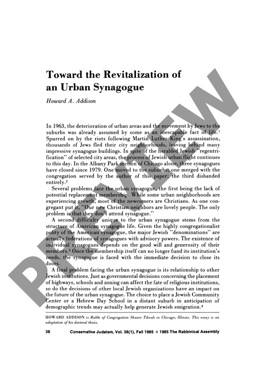 Toward the Revitalization of an Urban Synagogue