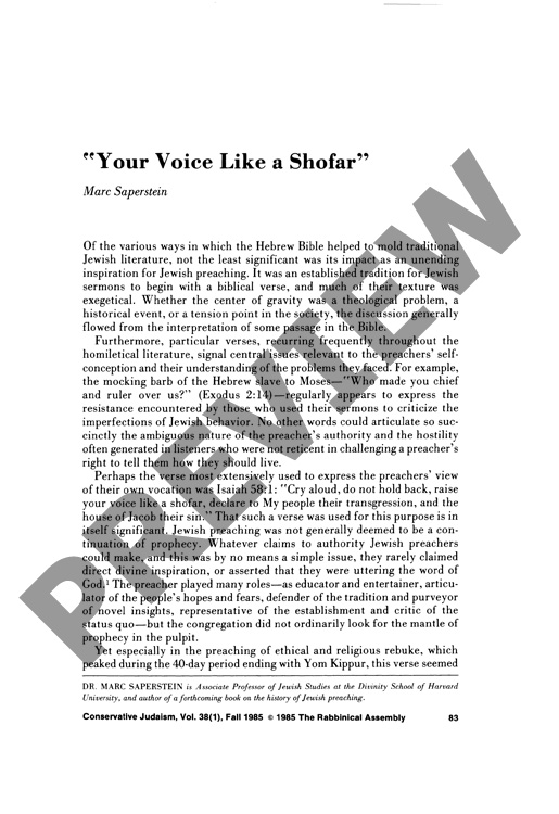 By Marc Saperstein for CJ vol. 38 no. 1, Fall 1985