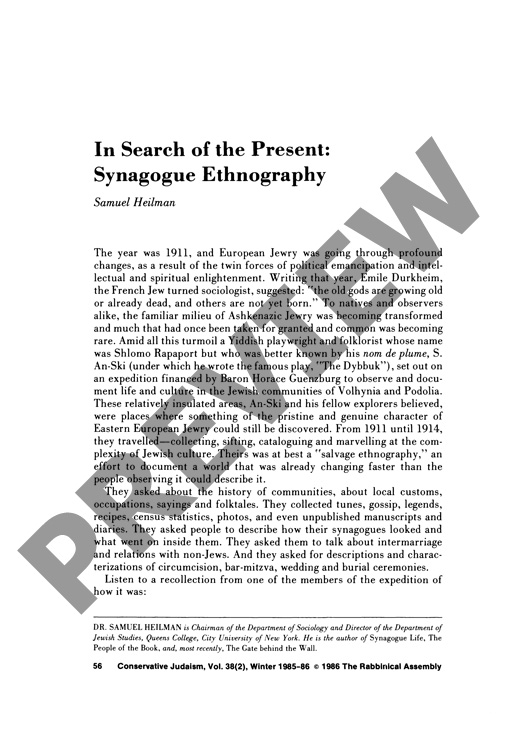 In Search of the Present: Synagogue Ethnography
