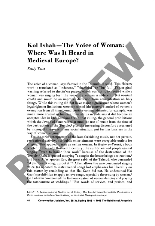 Kol Ishah-The Voice of Woman: Where Was It Heard in Medieval Europe