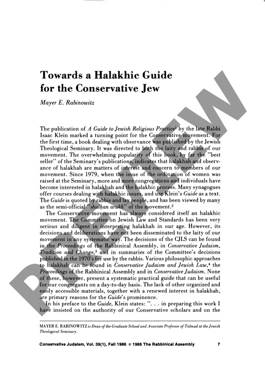 Towards a Halakhic Guide for the Conservative Jew