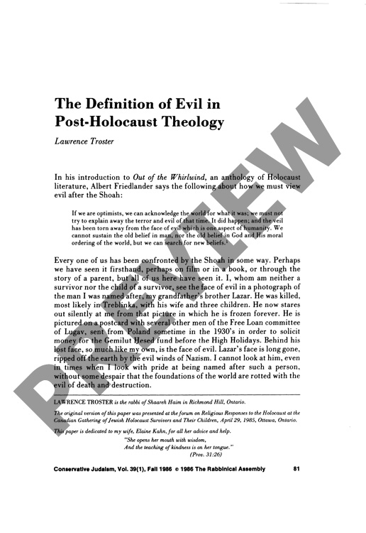 The Definition of Evil in Post-Holocaust Theology