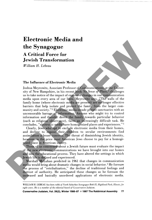Electronic Media and the Synagogue: A Critical Force for Jewish Transformation