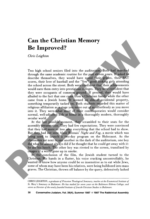 Can the Christian Memory Be Improved