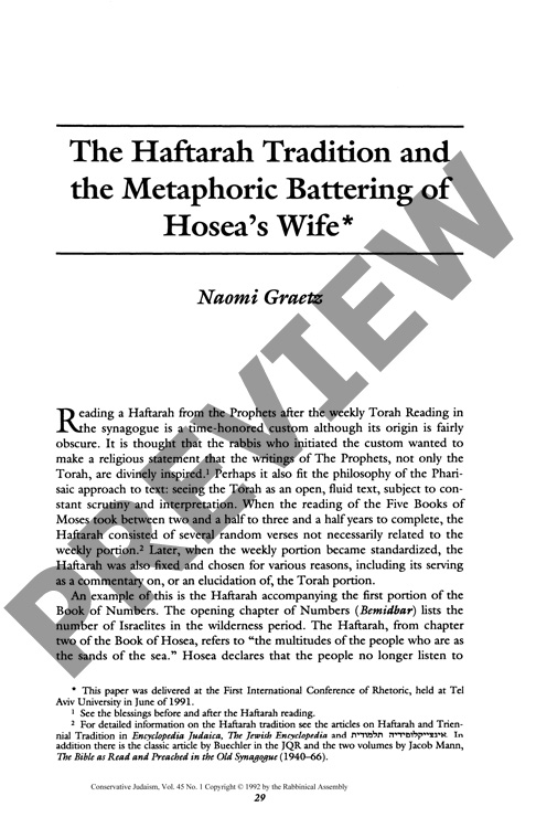 The Haftarah Tradition and the Metaphoric Battering of Hosea's Wife
