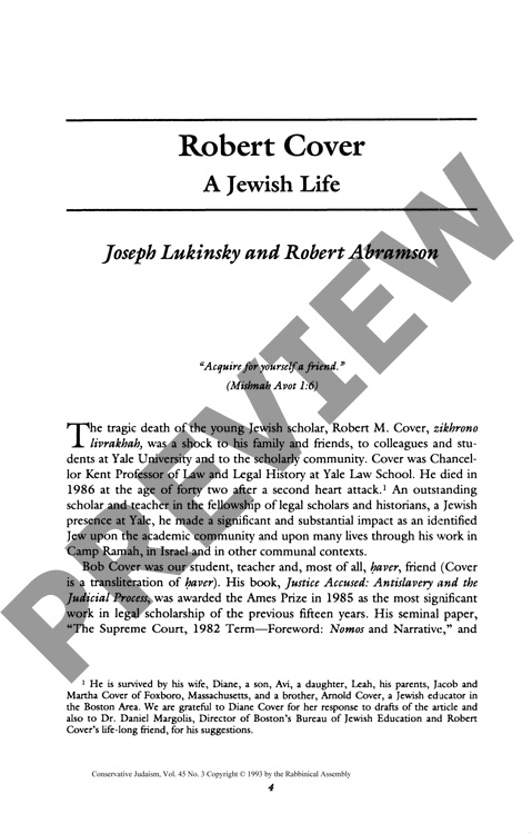 Robert Cover: A Jewish Life