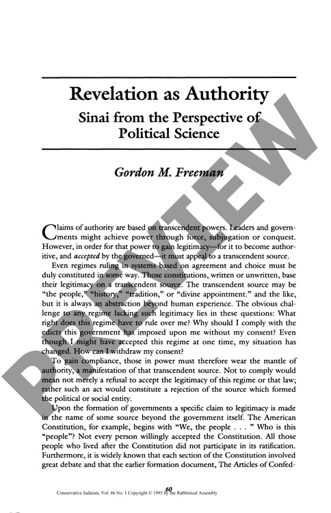 Revelation as Authority: Sinai from the Perspective of Political Science