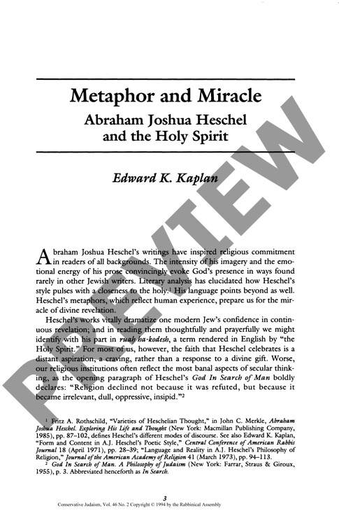 Metaphor and Miracle: Abraham Joshua Heschel and the Holy Spirit