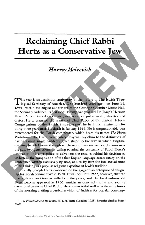 Reclaiming Chief Rabbi: Hertz as a Conservative Jew