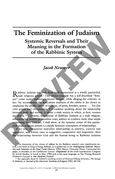 The Feminization of Judaism: Systematic Reversals and Their Meaning in the Formation of the Rabbinic System