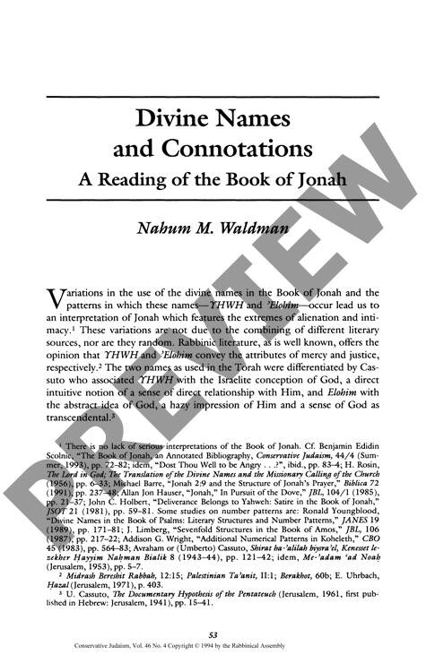 Divine Names and Connotations: A Reading of the Book of Jonah