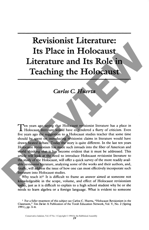 Revisionist Literature: Its Place in Holocaust Literature and Its Role in Teaching the Holocaust