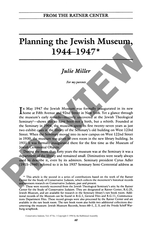 Planning the Jewish Museum, 1944-1947