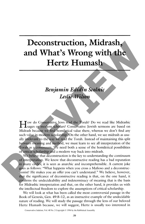 Deconstruction, Midrash, and What's Wrong with the Hertz Humash