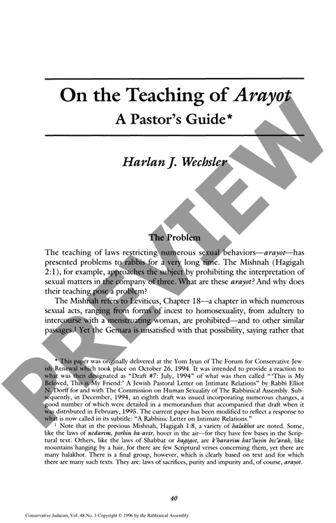 On the Teaching of Arayot: A Pastor's Guide