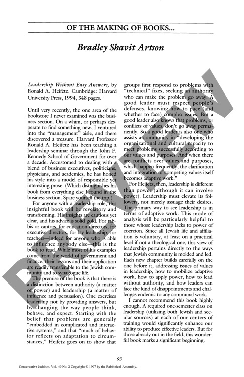 By Bradley Shavit Artson for CJ vol. 49 no. 2, Winter 1997