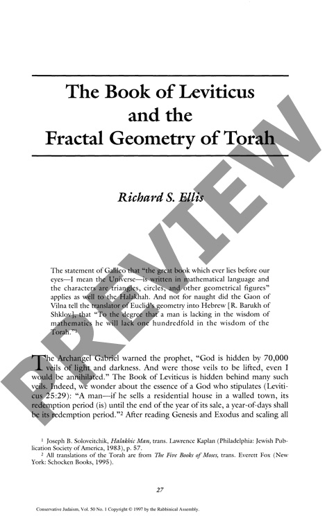 The Book of Leviticus and the Fractal Geometry of Torah