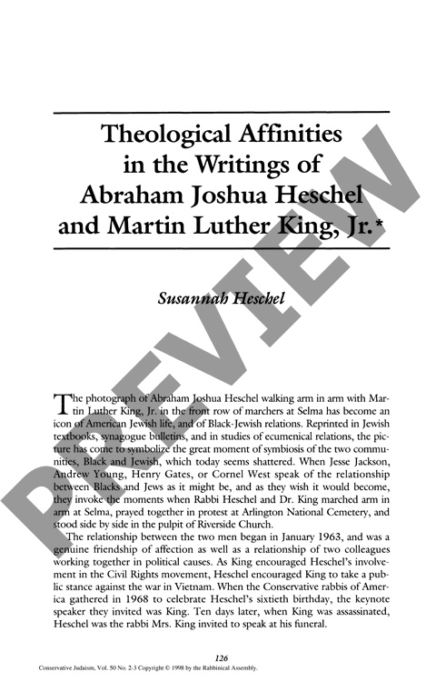 Theological Affinities in the Writings of Abraham Joshua Heschel and Martin Luther King, Jr